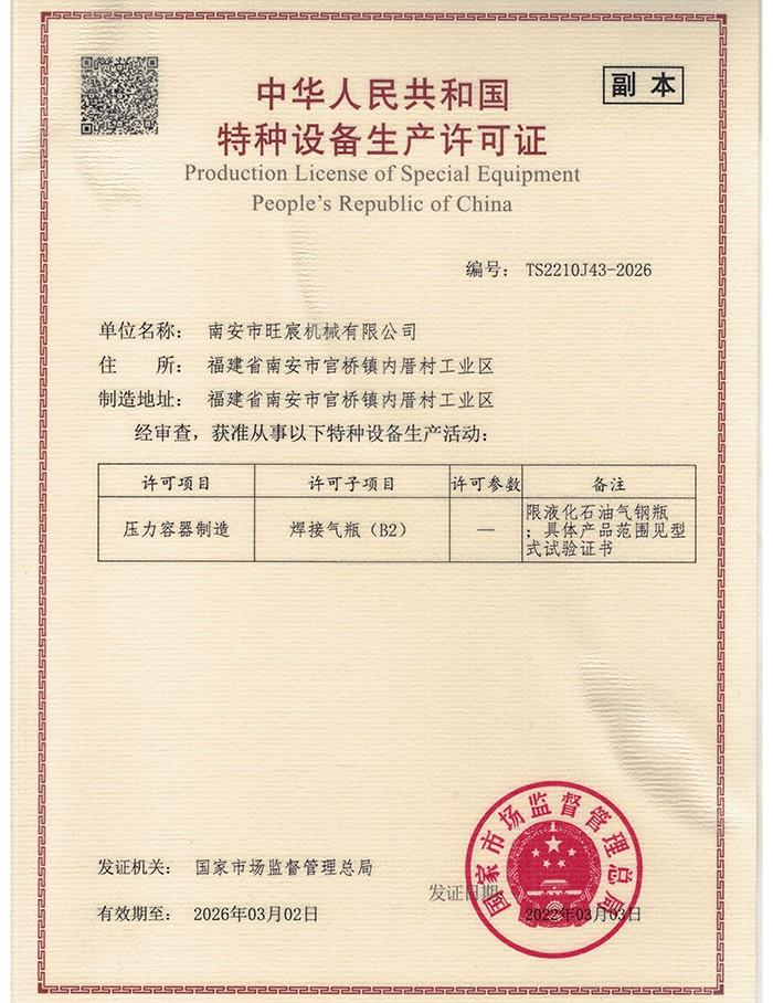 公司自2012年,專注液化石油氣鋼瓶生產(chǎn),累積豐富特種設(shè)備制造經(jīng)驗,并持二類壓力容器制造許可證(B2級),確保產(chǎn)品符合高標準。